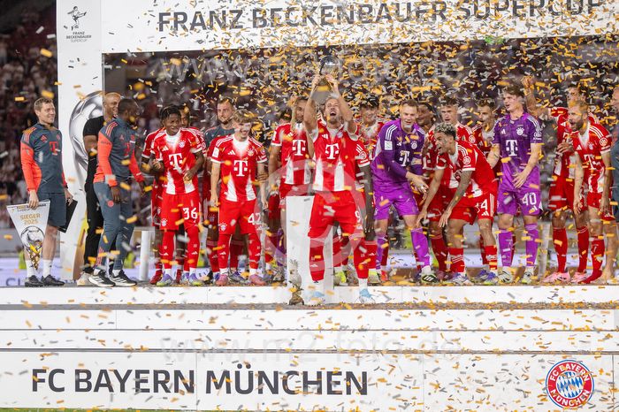 Der Sieger des Franz Beckenbauer Supercup 2025, der FC Bayern München, Harry Edward Kane (FC Bayern Muenchen) mit dem Pokal.