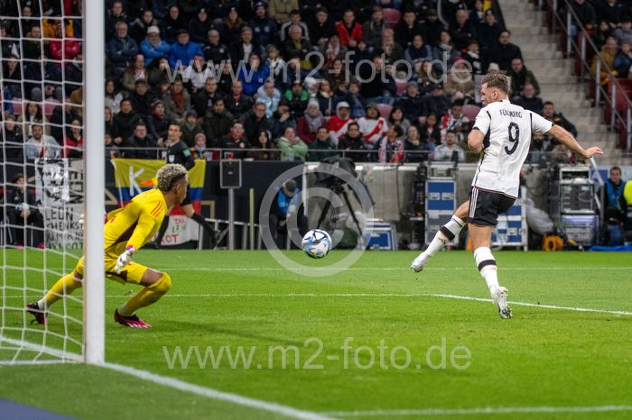 Niclas Füllkrug (GER) erzielt das 2:0, Torwart Pedro David Gallese (PER) kann es nicht verhindern.