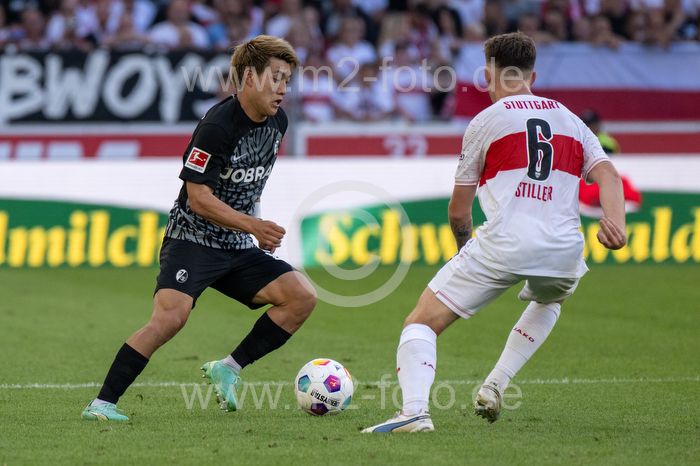 Ritsu Doan (SC Freiburg) und Angelo Stiller (VfB Stuttgart).