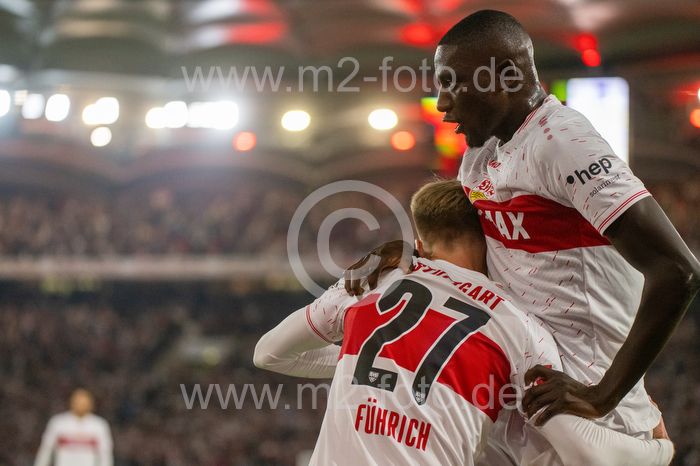 Zu früh gefreut Torschütze Chris Führich (VfB Stuttgart) und Serhou Guirassy (VfB Stuttgart), der Treffer zählt nicht wegen Abseits.