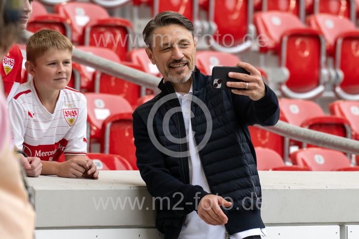 Trainer Niko Kovac (VfL Wolfsburg) erfüllt Selfi Wünsche.