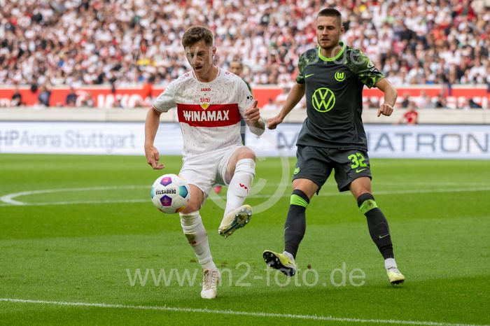 Deutschland, Stuttgart, 07.10.2023, Fussball, Bundesliga: VfB Stuttgart vs VfL Wolfsburg, Saison 2023/2024, 7. Spieltag, MHP Arena