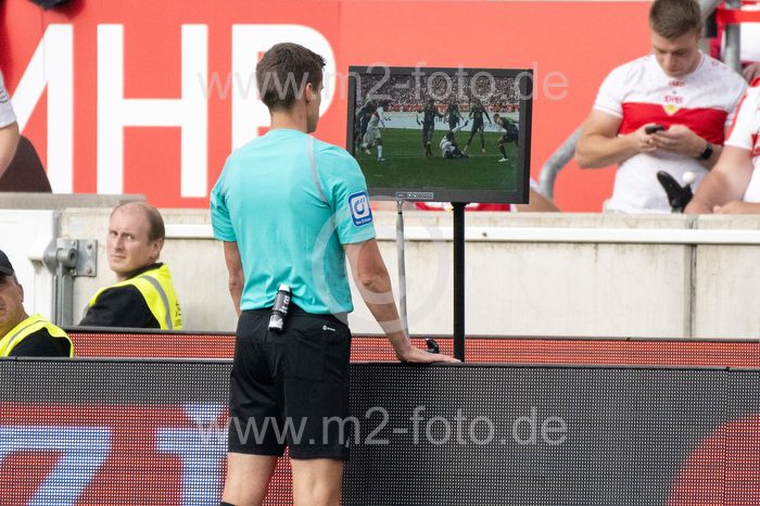 Schiedsrichter Daniel Siebert schaut sich das ganze nochmals an.