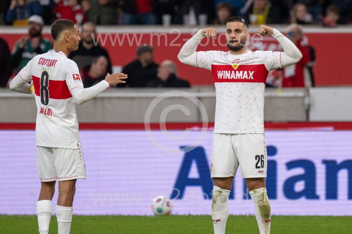 Torjubel des Torschützen Deniz Undav (VfB Stuttgart), Jubel und Freude bei Enzo Millot (VfB Stuttgart).