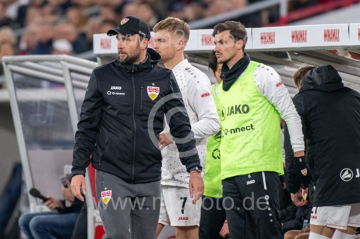Trainer Sebastian Hoeneß, Maximilian Mittelstädt und Pascal Stenzel (VfB Stuttgart).