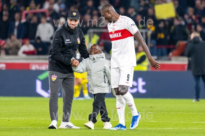 Trainer Sebastian Hoeneß (VfB Stuttgart), Serhou Guirassy (VfB Stuttgart) mit Sohn.
