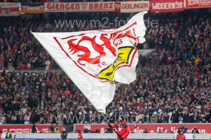 Feature, Symbolbild, Fahne mit dem Wappen des VfB Stuttgart.