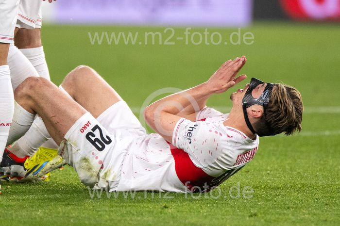 Anthony Rouault (VfB Stuttgart) liegt verletzt am Boden.