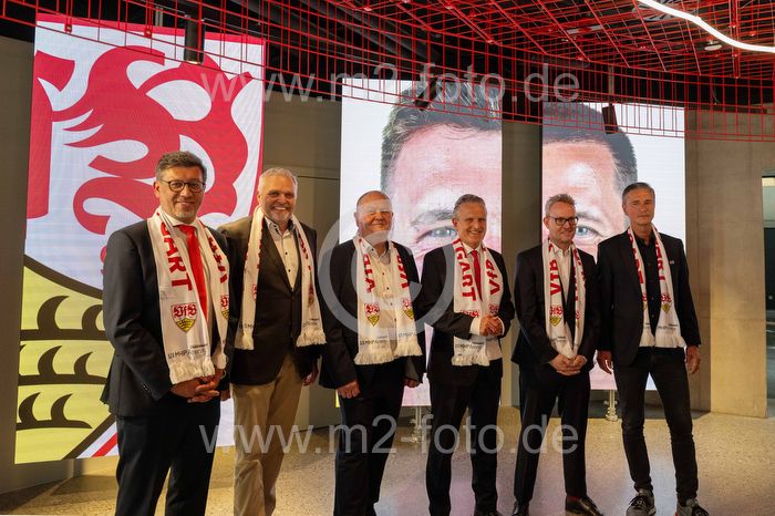 Eröffnung der neuen Haupttribüne v.l. Praesident Claus Vogt (VfB Stuttgart), Martin Rau, Markus Schmidt (Geschäftsführer der Stadion NeckarPark GmbH & Co.KG), Oberbürgermeister der Landeshauptstadt Stuttgart Dr. Frank Nopper, Vorstandsvorsitzender Alexander Wehrle (VfB Stuttgart), Lutz Meschke (Porsche AG).