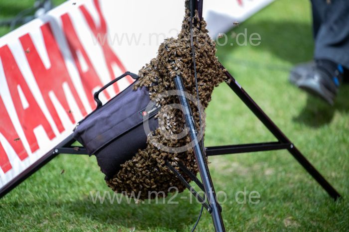 Ein Bienenschwarm hat sich auf der Hintertorkamera Platz gemacht.