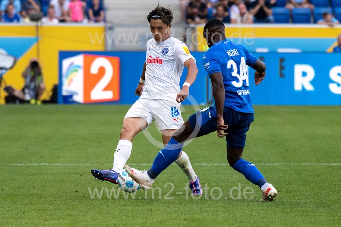 Shuto Machino (KSV Holstein Kiel) und Stanley Nskoi (TSG 1899 Hoffenheim).