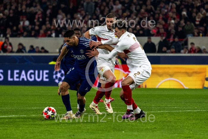 Achraf Hakimi (Paris St. Germain), Julian Gaston Chabot und Ameen Al-Dakhil (VfB Stuttgart).