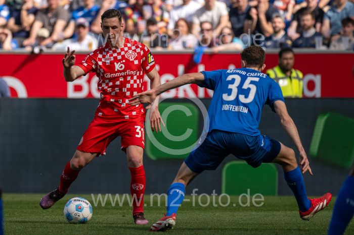 Deutschland, Sinsheim, 12.04.2025, Fussball, Bundesliga: TSG 1899 Hoffenheim vs 1.FSV Mainz 05, Saison 2024/2025, 29. Spieltag, PreZero Arena