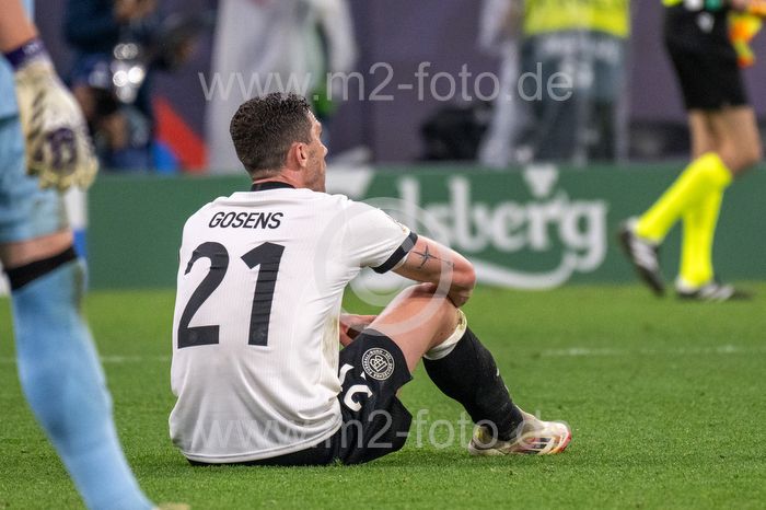 Robin Gosens (GER) sitzt enttäuscht, frustriert, niedergeschlagen auf dem Spielfeld.