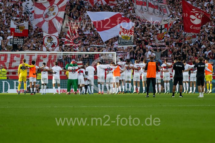 Die Stuttgarter Spieler feiern mit Ihren Fans.