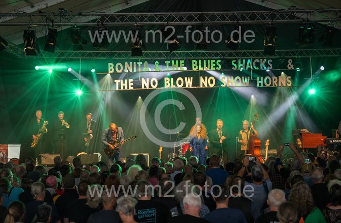 Deutschland, Gaildorf, 12.07.2024, 28. Bluesfest, 2024, , Bonita & The Blues Shacks feat., The No Blow No Show Horns (GER/AUT), Kocherwiese