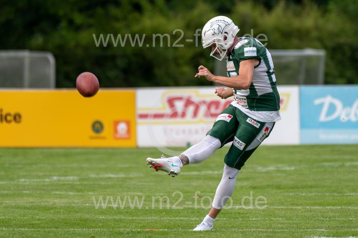 Tim Stadelmayr (Schwaebisch Hall Unicorns) beim Kick Off.