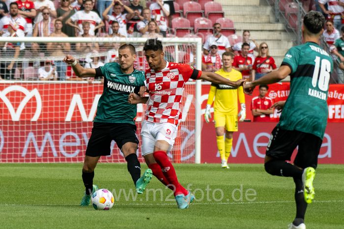 Waldemar Anton (VfB Stuttgart) und Karim Onisiwo (1.FSV Mainz 05).