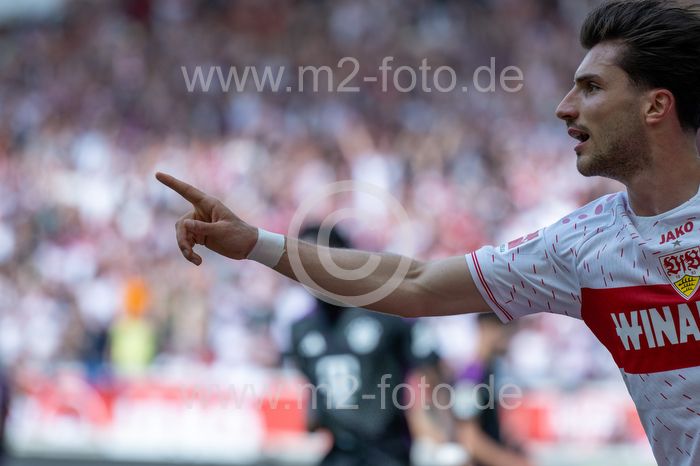 Torjubel des Torschützen Leonidas Stergiou (VfB Stuttgart).