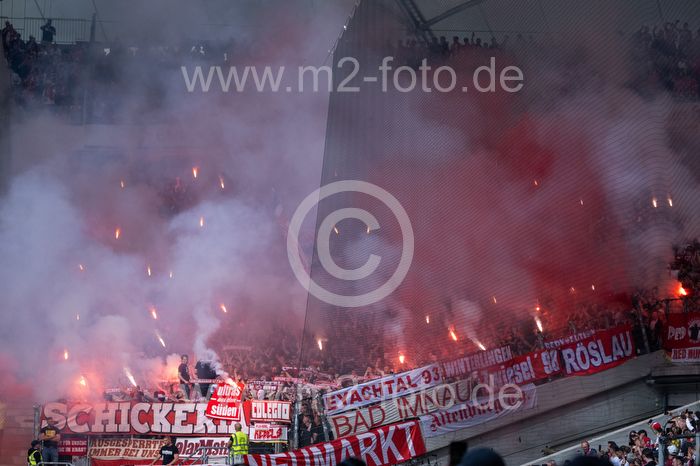 Bengalos, pyrotechnics, Rauch steigt auf im Bayern Fanblock.