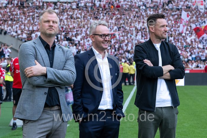 Sportdirektor Fabian Wohlgemuth, Vorstandsvorsitzender Alexander Wehrle und Leiter der Lizenzspieler-Abteilung Christian Gentner (VfB Stuttgart).