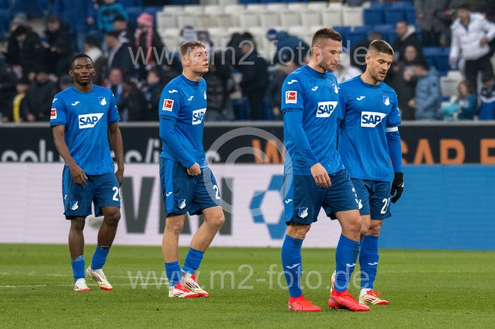 Bazoumana Toure, Alexander Prass, Pavel Kaderabek und Andrej Kramaric (TSG 1899 Hoffenheim) gehen mit gesenkten Köpfe zu den Fans.
