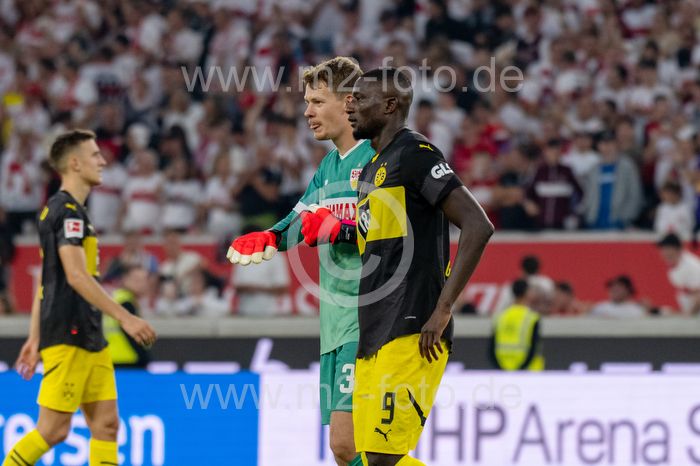 Torwart Alexander Nübel (VfB Stuttgart) und Serhou Guirassy (Borussia Dortmund).