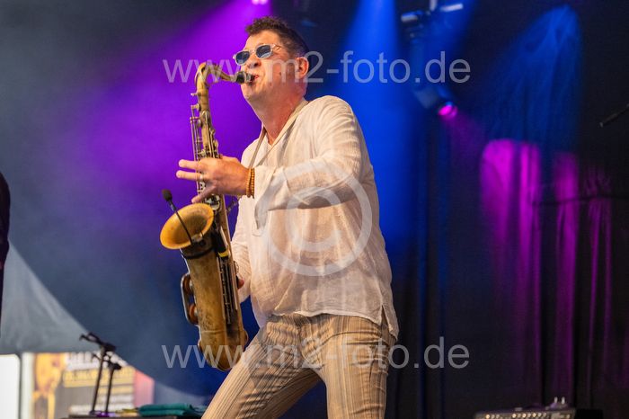 Deutschland, Gaildorf, 13.07.2024, 28. Bluesfest, 2024, Bluesfest, Leon Beal & Luca Giordano Band feat. Sax Gordon (USA/I), Kocherwiese