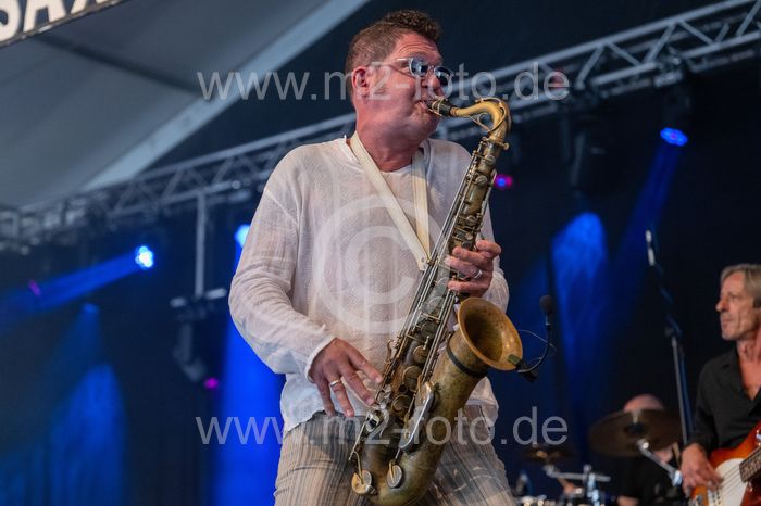 Deutschland, Gaildorf, 13.07.2024, 28. Bluesfest, 2024, Bluesfest, Leon Beal & Luca Giordano Band feat. Sax Gordon (USA/I), Kocherwiese