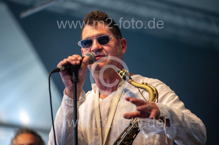 Deutschland, Gaildorf, 13.07.2024, 28. Bluesfest, 2024, Bluesfest, Leon Beal & Luca Giordano Band feat. Sax Gordon (USA/I), Kocherwiese