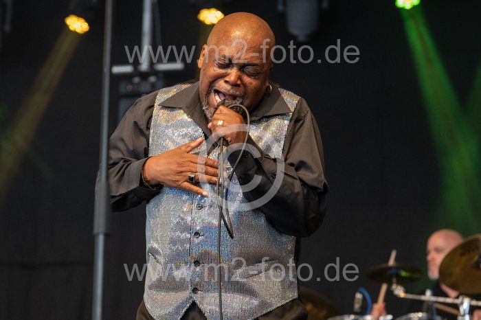 Deutschland, Gaildorf, 13.07.2024, 28. Bluesfest, 2024, Bluesfest, Leon Beal & Luca Giordano Band feat. Sax Gordon (USA/I), Kocherwiese