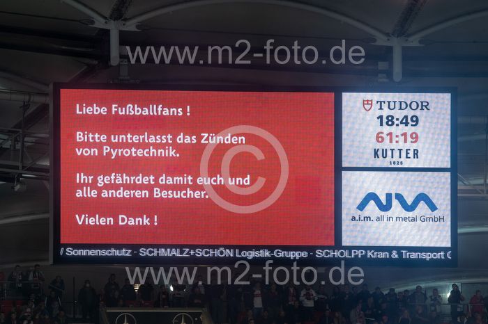Feature, Symbolbild, Hinweis auf der Anzeigetafel zum unterlassen vom Zünden von Pyrotechnik.