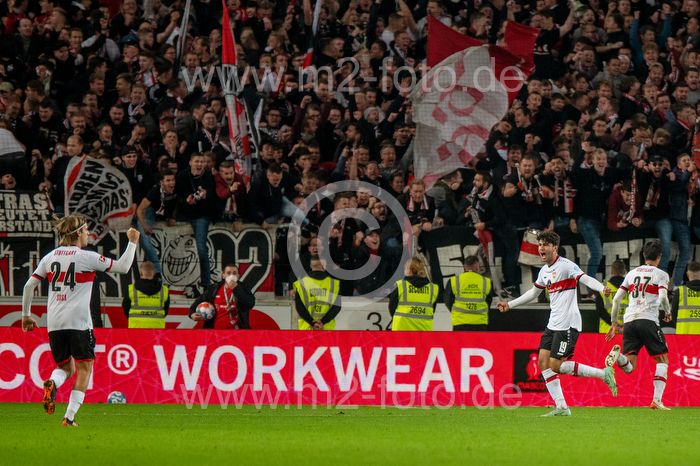 Torjubel des Torschützen Wahid Faghir (VfB Stuttgart), Jubel und Freude bei Borna Sosa (VfB Stuttgart).