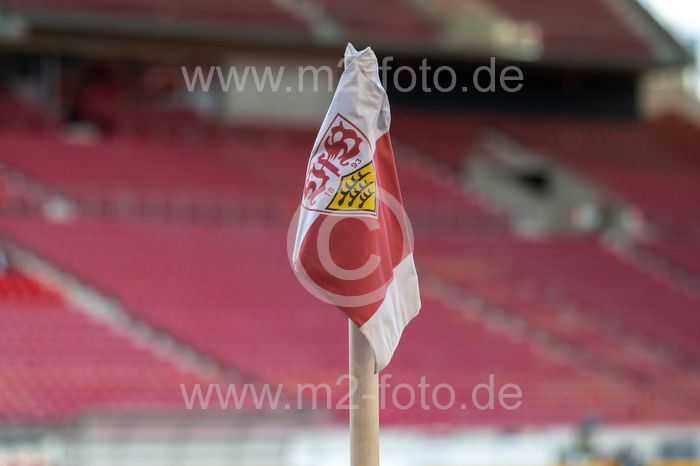 Feature, Symbolbild, Eckfahne mit dem Vereinswappen des VfB Stuttgart.