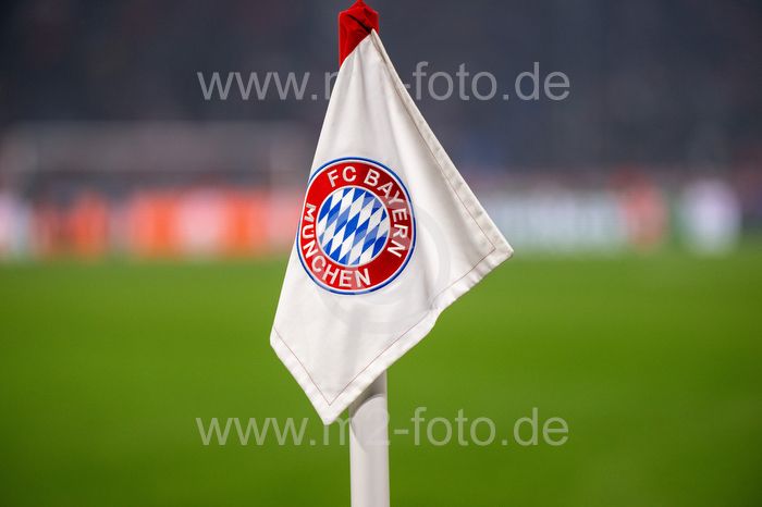 Feature, Symbolbild, Eckfahne mit dem Logo des FC Bayern München.