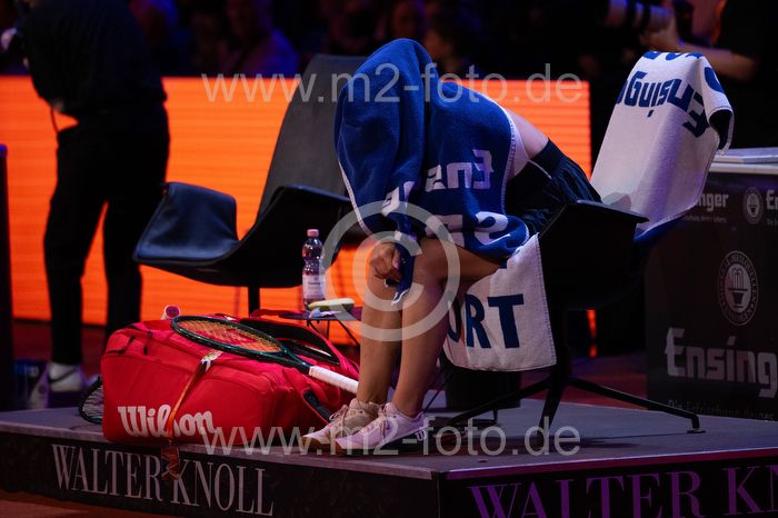 Die enttäuschte Marta Kostyuk (UKR) versteckt sich unter Ihrem Handtuch.