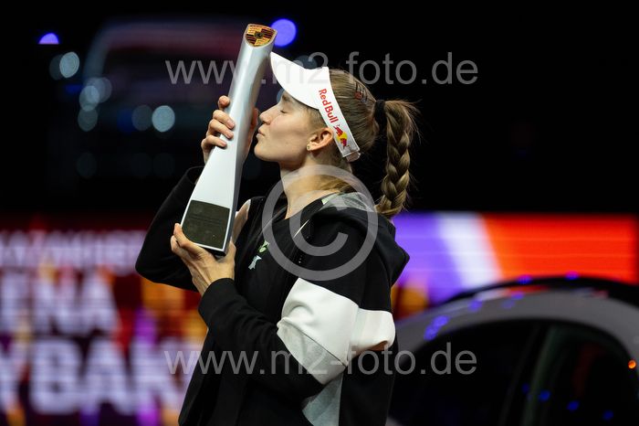 Elena Rybakina (KAZ) mit dem Siegerkuss für den Pokal.