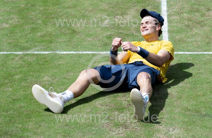 Jubel und Freude nach seinem verwandelten Matchball zum 3:6, 7:6, 6:4 über Matteo Berrettini (ITA) bei Jack Draper (GBR).