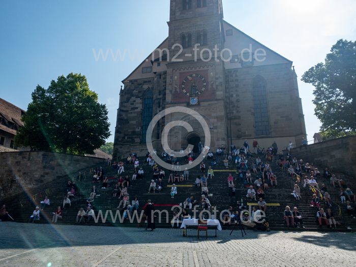 Gottesdienst auf der grossen Freitreppe vor der Evangelische Stadtpfarrkirche St. Michael.