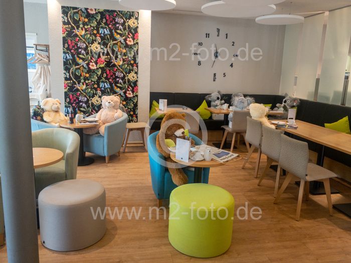 Deutschland, Schwaebisch Hall, 21.05.2020, Corona, Die Abstandsbaeren im Cafe Ableitner, Cafe Ableitner