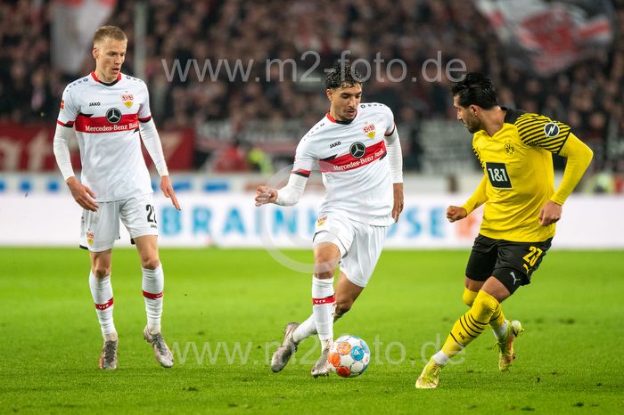 Chris Führich, Omar Khaled Mohamed Marmoush (VfB Stuttgart) und Emre Can (Borussia Dortmund).