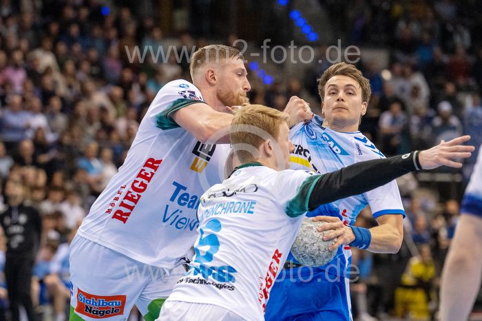 Blaz Blagotinsek, Jon Lindenchrone Andersen (Frisch Auf! Goeppingen) und Max Häfner (TVB 1898 Stuttgart).