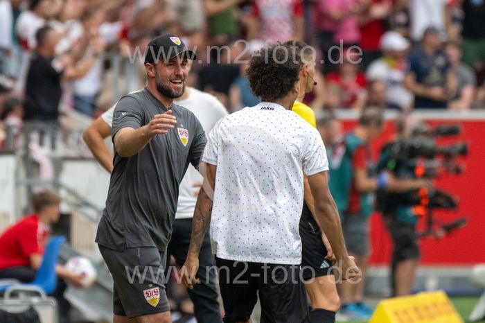 Jubel und Freude nach dem 1:3 bei Trainer Sebastian Hoeneß (VfB Stuttgart).
