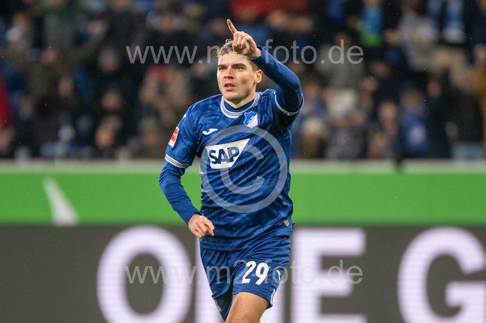 Torjubel des Torschützen Robert Skov (TSG 1899 Hoffenheim).
