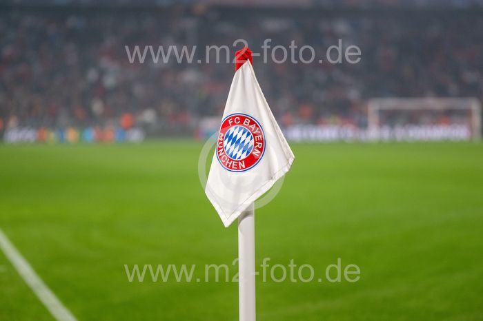 Feature, Symbolbild, Eckfahne mit dem Logo des FC Bayern München.