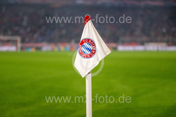 Feature, Symbolbild, Eckfahne mit dem Logo des FC Bayern München.