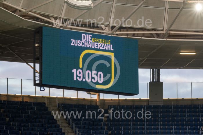Die offizielle Zuschauerzahl 19.050 wird auf der Anzeigetafel eingeblendet.