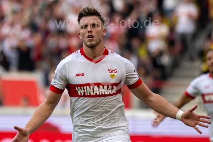 Torjubel des Torschützen Ermedin Demirovic (VfB Stuttgart).