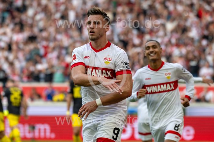 Torjubel des Torschützen Ermedin Demirovic (VfB Stuttgart).