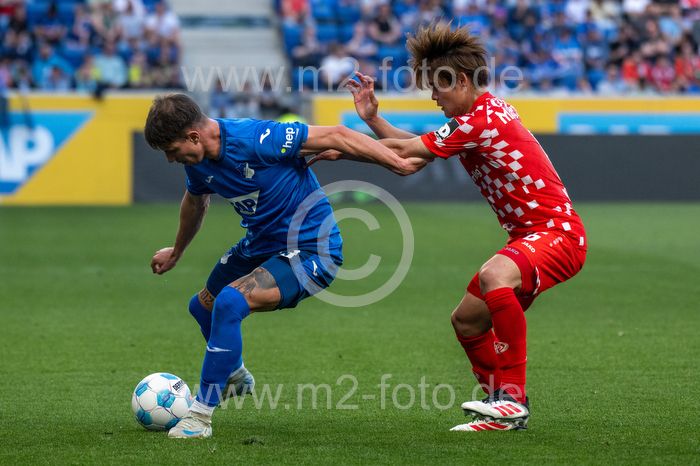 Adam Hlozek (TSG 1899 Hoffenheim) und Kaishu Sano (1.FSV Mainz 05).